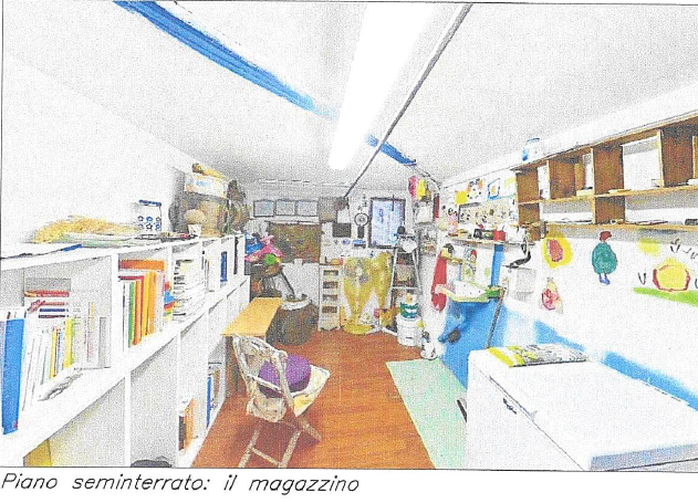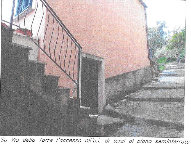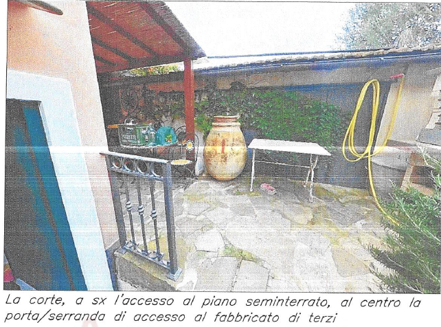 Il piano terra è composto da: scala di collegamento che dal lato nord (corte) scende al disimpegno, locale tecnico, magazzino 1, ripostiglio.