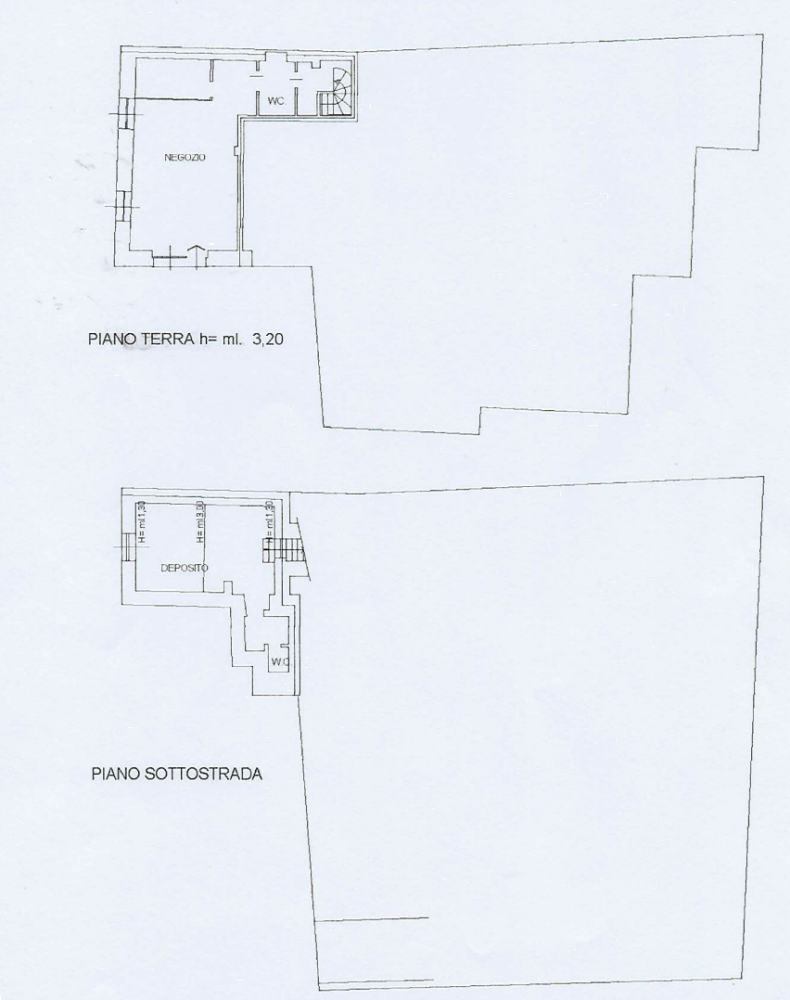 Trattasi di un negozio al piano terra con w.c. e scala di collegamento col piano interrato con deposito e w.c.