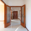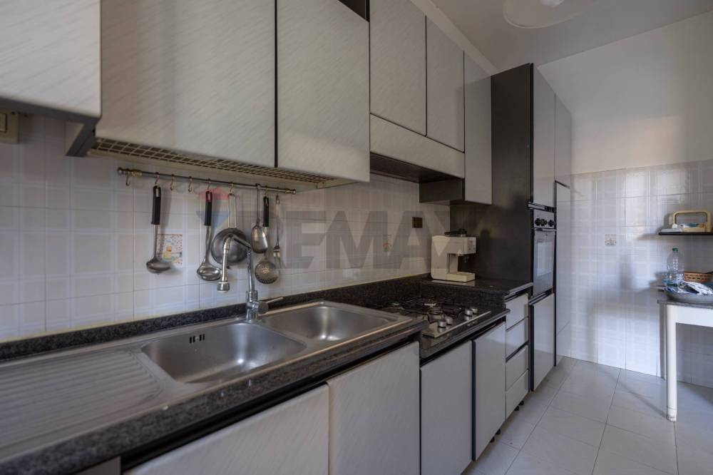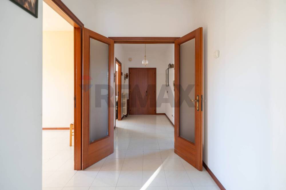 Lingresso si apre su un disimpegno che conduce a una cucina con cucinino, un ampio soggiorno, tre camere matrimoniali e un bagno finestrato.