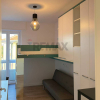 Varcando la porta d’ingresso, si apre un open space luminoso dove cucina a vista con isola e zona living dialogano armoniosamente, creando un ambiente accogliente e moderno. Una parete attrezzata cela un elegante studio: un angolo intimo e riservato, nascosto con gusto.