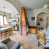 L'ambiente living si presenta in un'unica composizione open space, dove soggiorno e cucina dialogano attraverso un elegante arco in muratura.