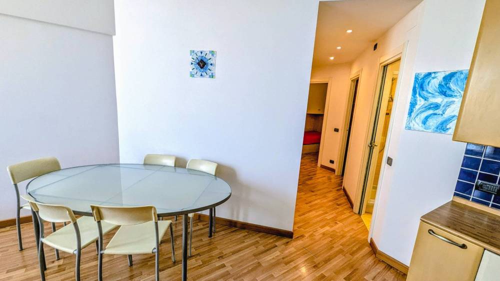 COMPOSIZ. VANI / DISTRIBUZ. POSTI LETTO: ingresso, camera matrimoniale con letto ad una piazza e ½, camera 2 letti singoli, tinello con divano letto matrimoniale, angolo cottura, bagno (doccia).
