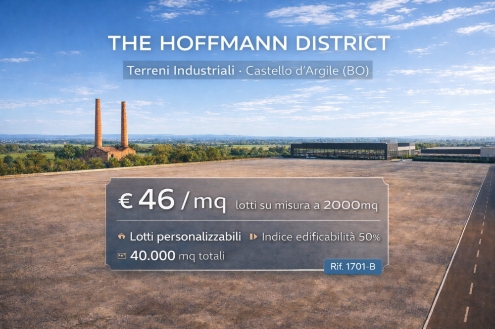 THE HOFFMANN DISTRICT - CASTELLO D'ARGILE (BO) Sei pronto a dare forma al futuro della tua impresa? Tra Bologna, Ferrara e Modena, nel cuore pulsante dell'Emilia produttiva, ti aspetta un'opportunità che ridefinisce le regole del mercato: il "The Hoffmann District". Non stiamo vendendo un semplice pezzo di terra, ma una vasta area di 40.000 mq divisibile in lotti di varie dimensioni, che funge da tela bianca per la tua visione imprenditoriale. Abbiamo deciso di aprire il nostro ampio comparto per chi, come te, non si accontenta di soluzioni preconfezionate e crede nel valore della personalizzazione e della libertà progettuale. Il cuore dell'offerta è il prezzo, un numero che non teme confronti: solo € 46 al metro quadro. Questa quotazione, estremamente aggressiva per la provincia di Bologna, riflette lo stato attuale del terreno: non è ancora urbanizzato. E qui sta il vero vantaggio: questa condizione ti offre la libertà totale di gestire e ottimizzare l'iter urbanistico, realizzando da zero le opere (strade, fognature, allacciamenti) esattamente come servono al tuo progetto, massimizzando l'efficienza e i margini operativi. Che tu abbia bisogno di 1.000 mq, 5.000 mq o di più, troviamo la soluzione giusta per te, con un indice di edificabilità generoso del 50%. Scegliendo "The Hoffmann District", non solo fai un affare economico, ma investi in un luogo con un'anima. Il contesto di rigenerazione (brownfield), con le sue due storiche ciminiere che svettano sullo sfondo, è perfettamente allineato ai moderni criteri di sostenibilità e ti garantisce un'identità unica. Dimentica i vincoli dei capannoni datati. Qui si parte dalla terra, per costruire il tuo successo. Sei un operatore esperto che sa riconoscere il vero potenziale e il valore nella gestione diretta dello sviluppo? Contattaci subito per definire la metratura del tuo lotto ideale. La trasparenza e la concretezza sono di casa. Trattativa riservata. Chiamate ora. Rif.:1701-B a partire da 60.000 euro +iva