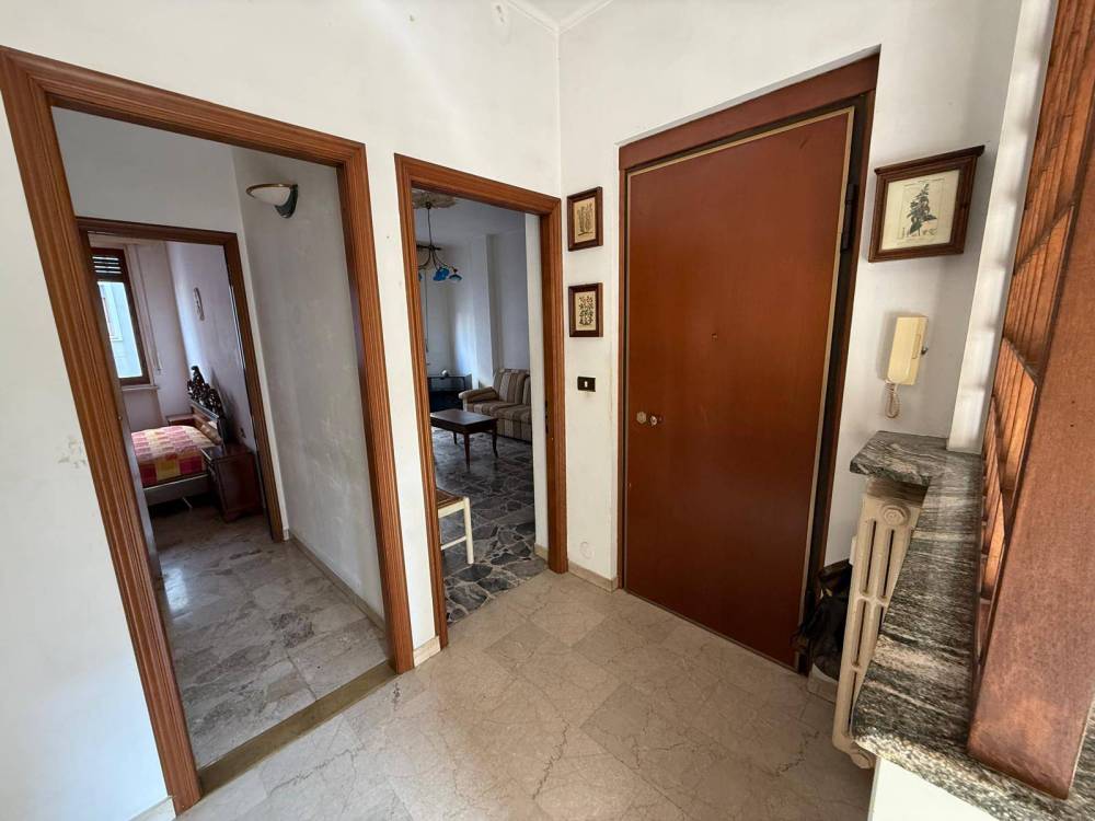 Porta blindata, infissi in legno, pavimentazione in marmo.