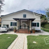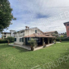 Villetta unifamiliare con ampio giardino privato di 1400 mq circa che si sviluppa su un piano fuori terra, più il piano ammezzato, il sottotetto e il piano interrato. In lato nord è presente il portico dingresso con copertura in legno e pilastri con rivestimento in pietra. Al piano terra trova collocazione la zona pranzo ed il soggiorno, la cucina, un bagno di servizio e una camera da letto. E presente anche un ampio portico in lato sud accessibile sia dalla zona giorno che dalla cucina. Tramite scala interna dalla zona giorno si accede sia al piano ammezzato, costituito da un vano adibito a camera, sia al piano sottotetto che accoglie la camera matrimoniale con bagno esclusivo, cabina armadio e balcone, una camera singola e altri tre vani adibiti a camera da letto, bagno e studio. Dalla zona giorno, sempre con scala interna, si accede ad un locale adibito a deposito/ ripostiglio, posizionato alla quota del giardino, e al piano interrato, dove trovano collocazione la taverna, la lavanderia e la centrale termica.