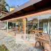 Una cucina esterna di 80 mq. perfettamente attrezzata chiusa da una vetrata scorrevole con accesso diretto alla zona piscina