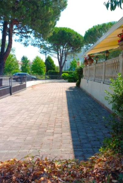 Pizzeria al piano terra di un complesso immobiliare sito ad Abano Terme (PD) in via G.B. Moroni, composta da bar, sale da pranzo, cucina con forno e servizi igienici, salita la scala si accede ad un ampio terrazzo.