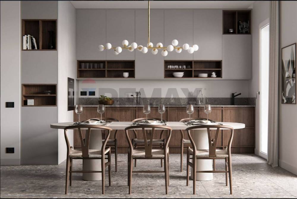 Lingresso accompagna alla zona living di grandi dimensioni e a unampia cucina separata. Le ampie vetrate garantiscono luce naturale in tutti gli ambienti, rendendo la casa calda e accogliente in ogni momento della giornata.