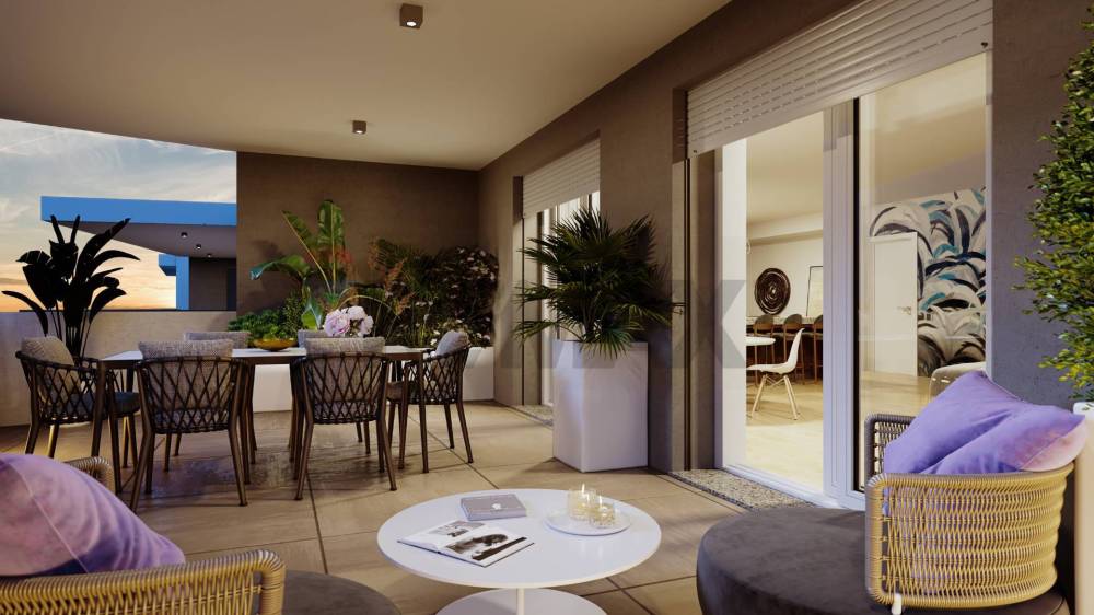 Dalla zona giorno e da due camere da letto si accede a due splendidi terrazzi coperti per un totale di circa 45 mq, spazi ideali per pranzi allaperto, relax e convivialità, perfettamente integrati con la casa.