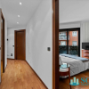 L'ingresso conduce in un ampio e luminoso soggiorno con ampio balcone e cucina abitabile.