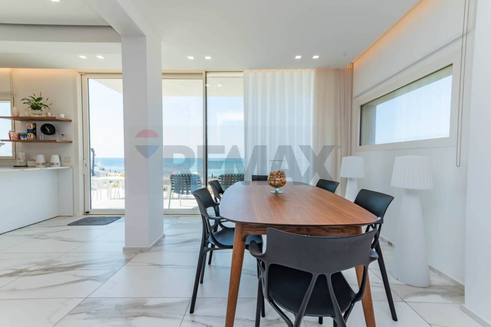 Accedendo alla proprietà, sarete accolti da una spaziosa e luminosa zona living, perfetta per momenti di relax e convivialità. La cucina con penisola, completamente attrezzata, si apre sul soggiorno, dove le ampie vetrate offrono una vista ininterrotta sulla veranda e sulla spiaggia. Sempre al piano terra, si trovano un bagno moderno e due comodi ripostigli.