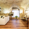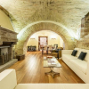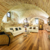 Labitazione si sviluppa su due livelli e gode di spazi molto generosi (circa 150mq calpestabili). Al piano terra si apre un ampio soggiorno con camino in pietra, impreziosito da un magnifico soffitto a volte del Quattrocento, elemento che caratterizza anche gli altri ambienti della casa. Sul soggiorno si affaccia una cucina in stile moderno, opportunamente separata dalla zona living. Completano il piano una camera da letto con bagno interno, un bagno per gli ospiti, una lavanderia e un locale tecnico.