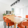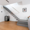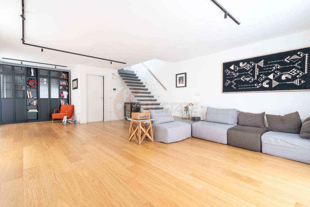 Lingresso ti accoglie direttamente nella sala da pranzo, ariosa e ben illuminata, lasciata in openspace con la cucina a vista. Le scale moderne diventano un elemento di design che accompagna lo sguardo e il movimento tra i livelli. Dal soggiorno esci verso il cortile interno, ampio e verde, uno spazio da vivere con la famiglia, tra pranzi allaperto e momenti di relax. Completa il piano il bagno di servizio, curato nei dettagli, con sanitari sospesi.