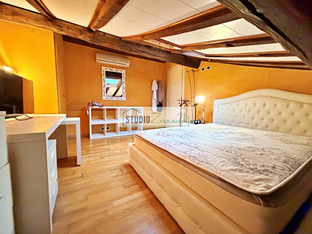 Lingresso si apre su un ampio e luminoso soggiorno, affiancato da una cucina abitabile con accesso diretto al terrazzo di servizio. Sullo stesso livello troviamo una comoda camera media con uscita indipendente sul terrazzo, un bagno con doccia e un pratico ripostiglio. Salendo al piano mansardato si accede alla zona notte , composta da una camera matrimoniale, una camera singola e un bagno con vasca.