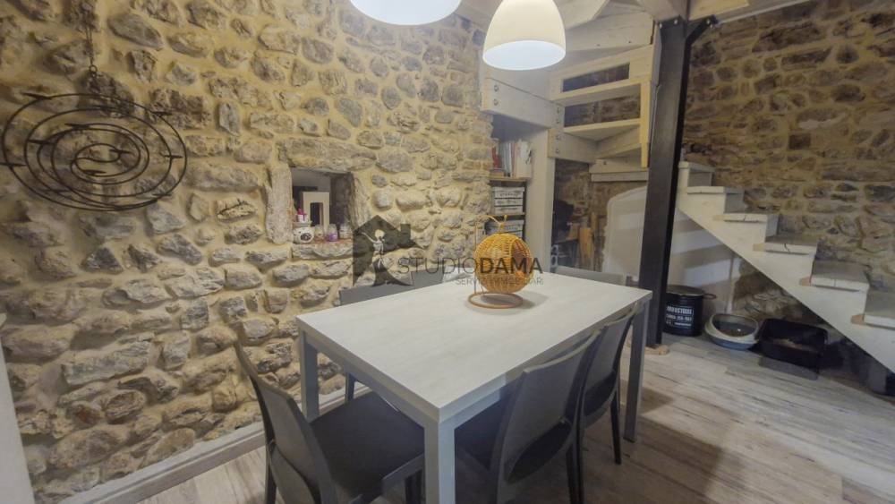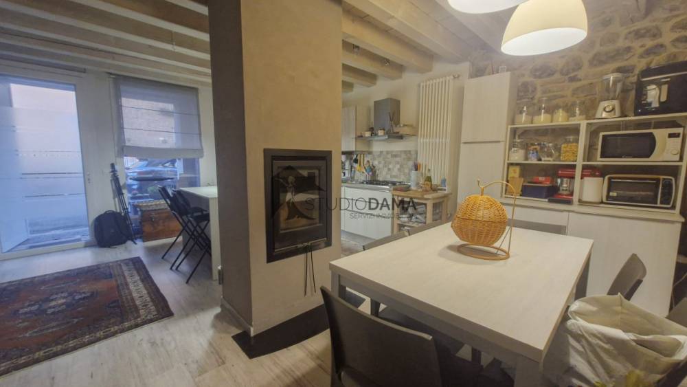Dal portichetto esterno ben curato ed elegante accediamo ad un grande openspace con salotto e camino moderno funzionante + cucina a vista . procediamo poi in direzione della affascinante taverna con muratura a vista e soffitto a volta. Questa zona è stata suddivisa con cartongesso e sono state estrapolate una prima stanza usata come zona giorno, una seconda stanza come studio o zona relax dotata di un ripostiglio e un primo bagno finestrato con doccia.
