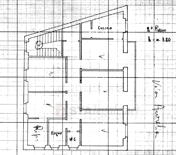 Piena proprietà di un appartamento al piano secondo, senza ascensore. Composto da: ampia zona giorno, ripostiglio/dispensa, studio costituito da due vani, disimpegno zona notte, una camera da letto, un bagno e la camera da letto matrimoniale corredata da bagno padronale e cabina armadio.