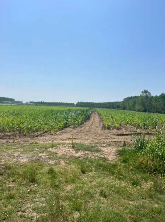 Trattasi di terreno attualmente coltivato a mais di 16.100mq e 5.300 mq con un totale di 21.402,00mq.