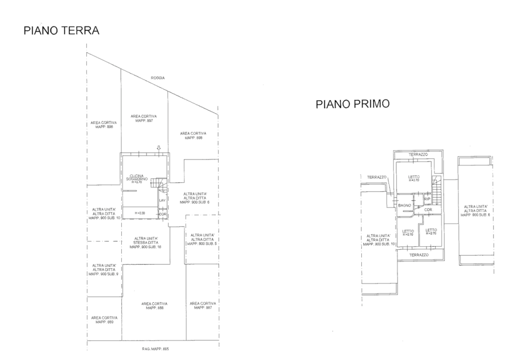 Trattasi di una villetta a schiera composta da piano terra con una cucina/soggiorno, un vano scala, un corridoio e una lavanderia. Al piano primo troviamo un corridoio, un bagno, un ripostiglio, due camere da letto singole, una camera letto matrimoniale e tre terrazzi di mq. 16,56.