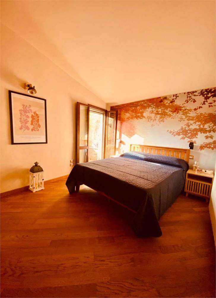 L'appartamento, della superficie di circa 65 mq, è composto da un ampio e luminoso soggiorno con caratteristico camino e angolo cottura, una camera da letto matrimoniale con un suggestivo terrazzino ed un bagno.