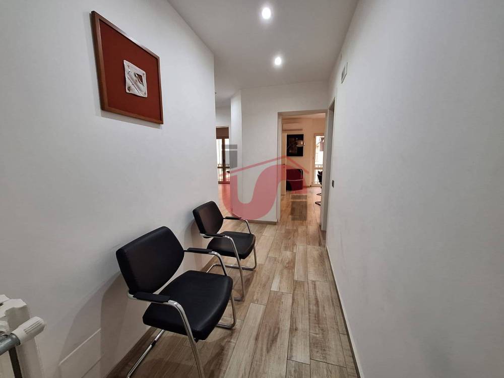 In una delle zone più prestigiose della città di Benevento (BN), P.zza IV Novembre (V.le Atlantici), vendiamo appartamento ristrutturato di mq. 111 ca, posto al piano terra, rispetto all'ingresso, di un fabbricato signorile, ma piano primo rispetto agli affacci principali. L'appartamento allo stato è utilizzato come studio e in questa configurazione si compone di ingresso, 5 vani utili dei quali i due principali dotati di ampie vetrate e affaccio sulla corte interna, servizio e disimpegno.