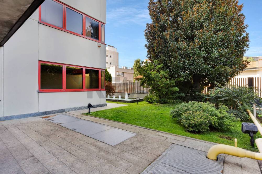 - Un ampio open space, caratterizzato da grandi vetrate a nastro che proseguono sui due lati consecutivi inondando l'ambiente di luce naturale e creando un'atmosfera luminosa e accogliente. L'affaccio è sul giardino interno, garantendo silenzio e privacy.