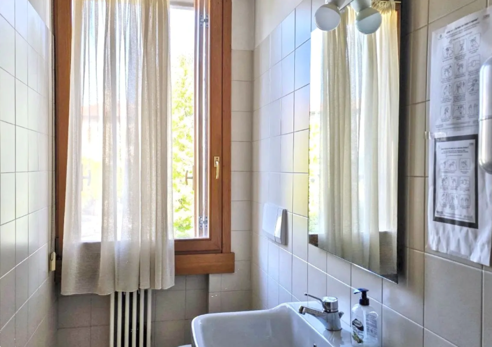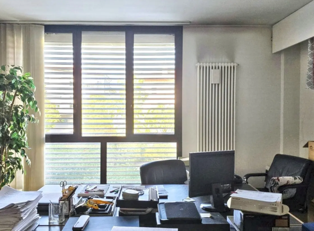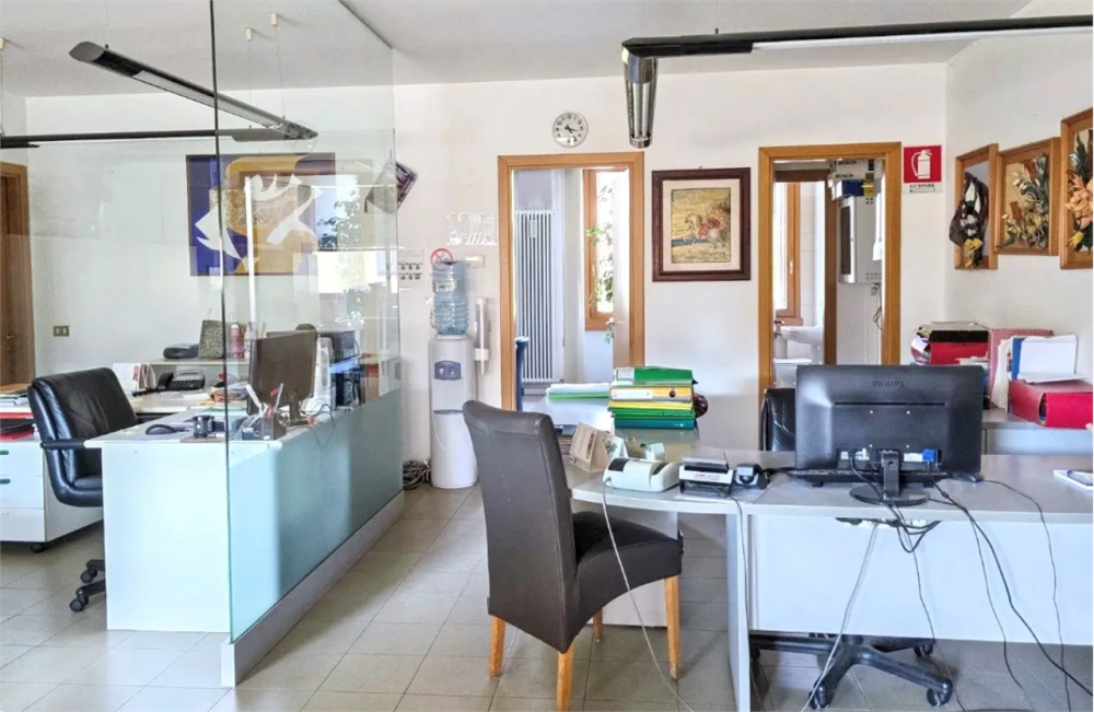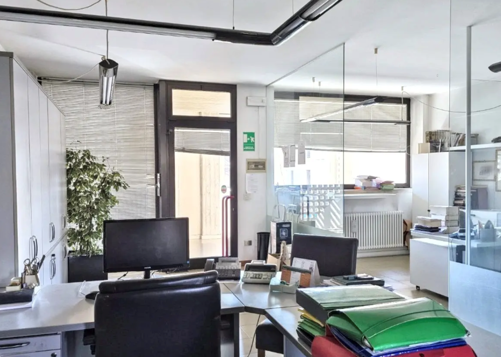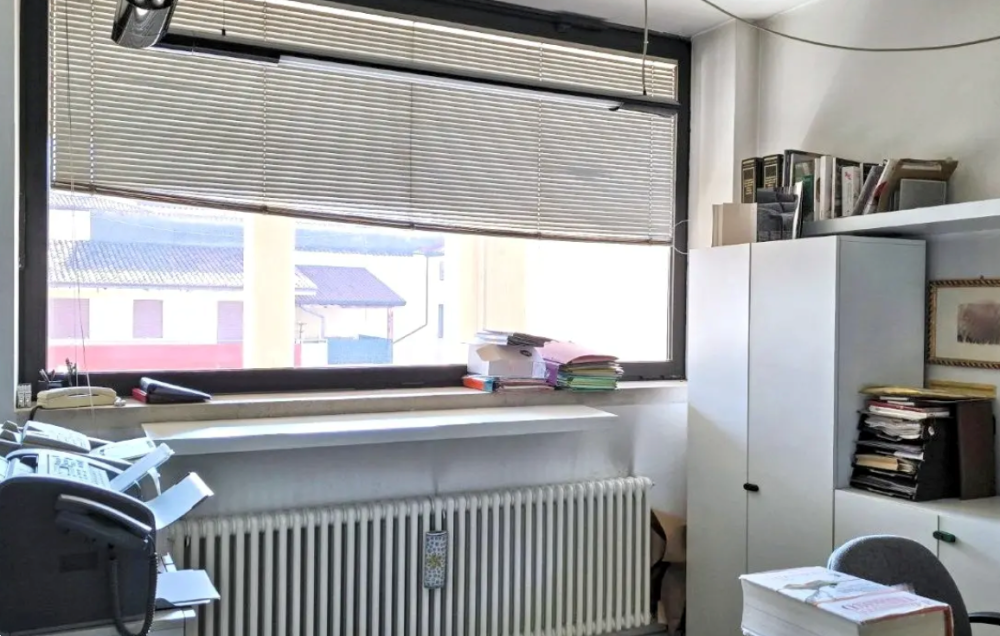 Ufficio al primo piano con annesso garage situato ad Arzignano (VI), in via Asilo Bonazzi, composto da un ampio vano, ingresso separato da pareti in vetro da rimuovere, due ulteriori vani uffici, antibagno con bagno.