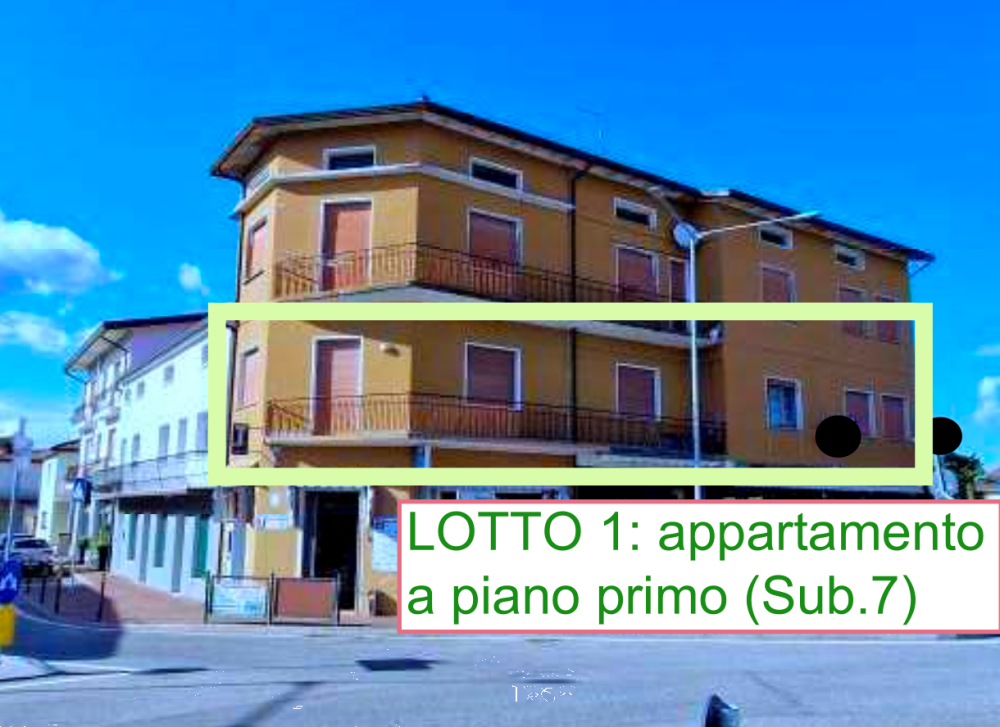 Appartamento al primo piano situato a Portogruaro (VE) in via Fausta, composto da un corridoio, soggiorno con propria uscita su balcone, una cucina-sala da pranzo, due camere da letto, un bagno e ripostiglio, locale/stanza (quest'ultimo separato e non collegato all'appartamento, con accesso da pianerottolo comune).