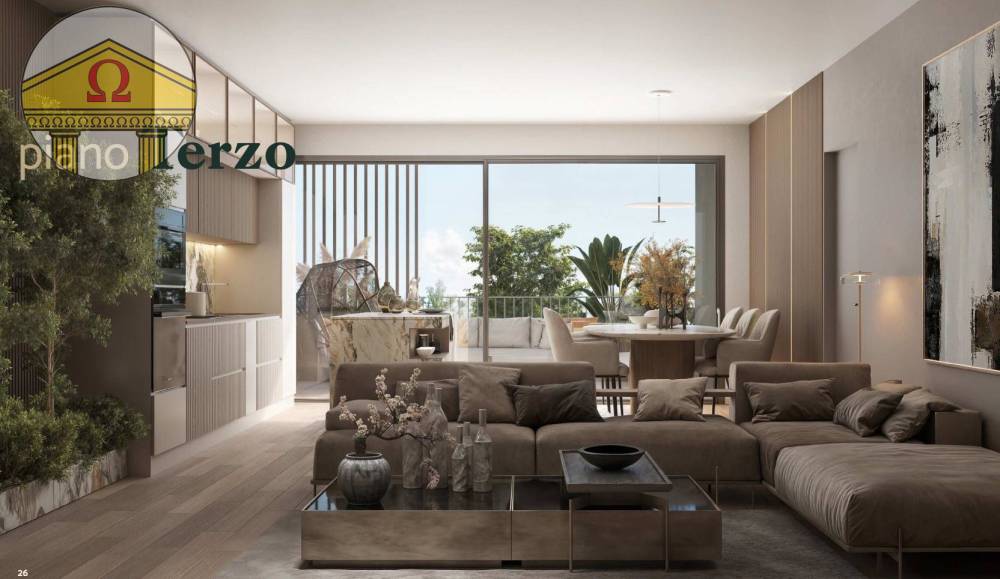 Zona Living: Un salone di 46 mq inondato di luce naturale, con accesso diretto alla terrazza.