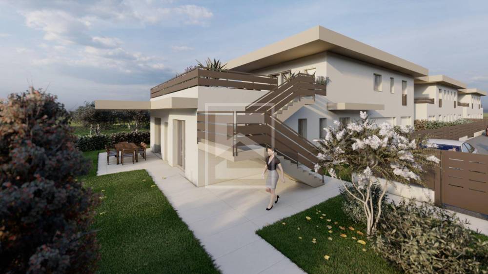 Nuovo progetto per 3 bifamiliari per complessivi 6 quadrilocali autonomi con ampio garage singolo e giardino o terrazza in classe A/4 a Puegnago del Garda.
