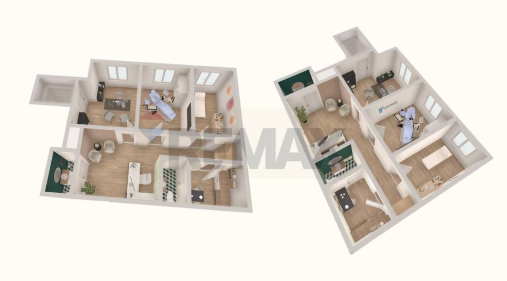 Internamente, lufficio di 48mq è composto da tre locali e un bagno, mentre lufficio di 25mq dispone di due locali e un bagno. La presenza di ambienti separati rende gli spazi adatti anche a chi necessita di un contesto lavorativo riservato e silenzioso.