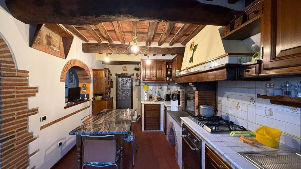 In vendita a Borgo a Mozzano, ed esattamente nella piacevolissima frazione di Valdottavo, terra di splendidi paesaggi collinari arricchiti da rigogliosi oliveti, si trova questa splendida casa semindipendente. È in ottimo stato di conservazione. Infatti, grazie ai lavori di ristrutturazione completati nei primi anni 2000, nell'abitazione si può dimorare sin da subito. Soluzione incastonata all'interno di una tipica corte del XVIII secolo, per di più affacciata di fronte a un'aia caratterizzata da un antico pozzo, a partire dagli esterni si presenta col tipico stile delle più accoglienti case toscane. La proprietà è composta da ben tre piani, con l'ultimo dedicato alle soffitte: nel complesso, soluzione immobiliare estesa su una superficie totale di ben 274 metri quadrati. Dopo aver osservato il decoro della facciata, formata da un bel gioco di pietra e mattoncini a facciavista, più le grate alle finestre del piano terra, oltrepassando il muretto che delimita la proprietà dalle altre e aprendo un bel portoncino a vetri si entra nella casa. Ad accogliere c'è il primo ambiente: un ingresso con sala da pranzo che dà un assaggio sulla raffinata e suggestiva scelta dell'arredamento, ovunque caratterizzato dal pregio dei vari materiali scelti. Perciò, chi ama il cosiddetto "stile rustico toscano" nella casa di Valdottavo trova dimora. Calde travi e travicelli a vista con solai in mattoni, altro "fil rouge" di tutta l'abitazione insieme ai pavimenti in cotto, non mancano nella zona dedicata alla cucina: ambiente che sorprende per la raffinatezza dei suoi arredi fatti su misura in legno muratura. Completa, il piacevole termocamino. Arricchisce la zona dedicata alla preparazione dei cibi, un pratico ripostiglio. Tornando nella zona d'ingresso, dove un passavivande la collega alla cucina, si nota il divertente arco in pietra. Basta oltrepassarlo per continuare a scoprire la zona giorno. Che prosegue con lelegante sala da bagno del piano e, poi, con la zona living. Quest'ultima è un accogliente ambiente dedicato alla convivialità della famiglia e dei suoi ospiti, una stanza ricca di calore aumentato dal bellissimo camino messo accanto al forno a legna. Al piano superiore si giunge percorrendo la scala introdotta dal già descritto arco, in pietra di Matraia, tipico materiale della zona: scelto per i gradini e altri elementi domestici. Giunti nella parte dedicata al riposo, la prima camera è in realtà una vera e propria suite matrimoniale: definizione resa dalle generose dimensioni nonché dall'attiguo bagno (condivisibile con la vicina camera e poi con le altre stanze). Le altre tre camere, di ampia metratura, possono accogliere letti e (perché no) trasformarsi anche in uno studio. Una seconda rampa di scale, conduce alle soffitte: ottima parte della casa, da adibire anche a zona dove poter sviluppare i propri hobby.