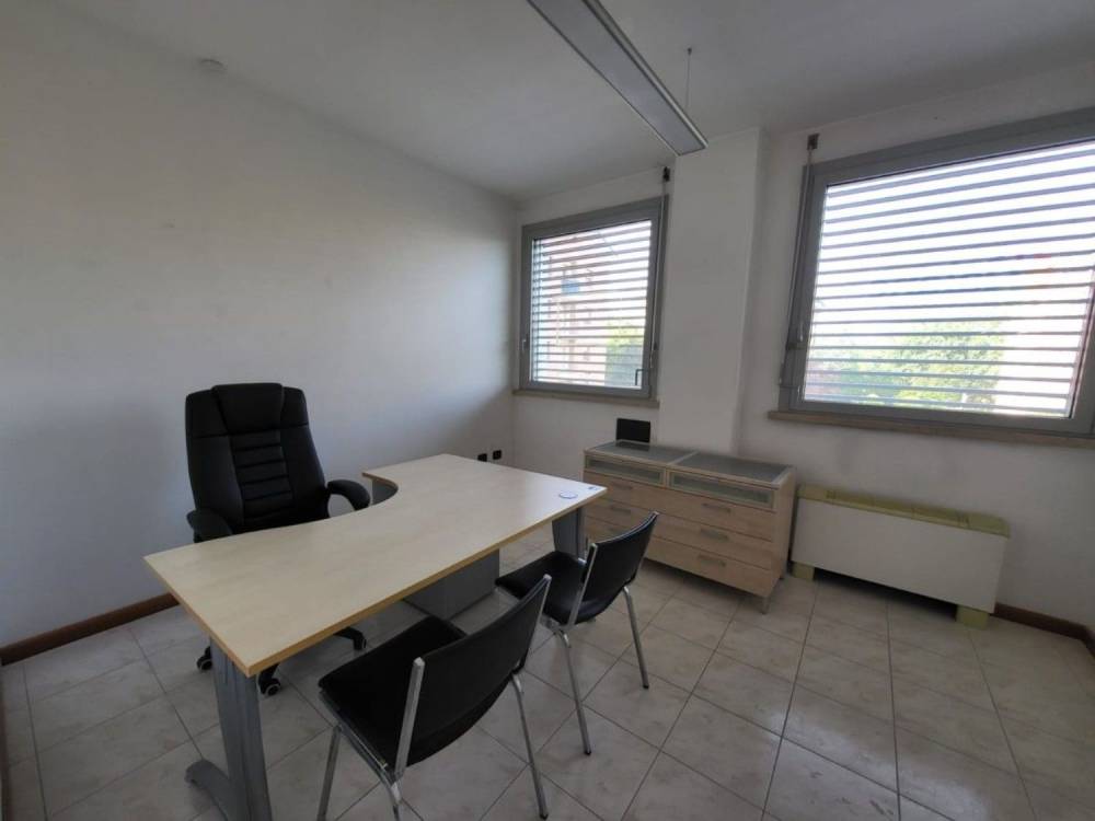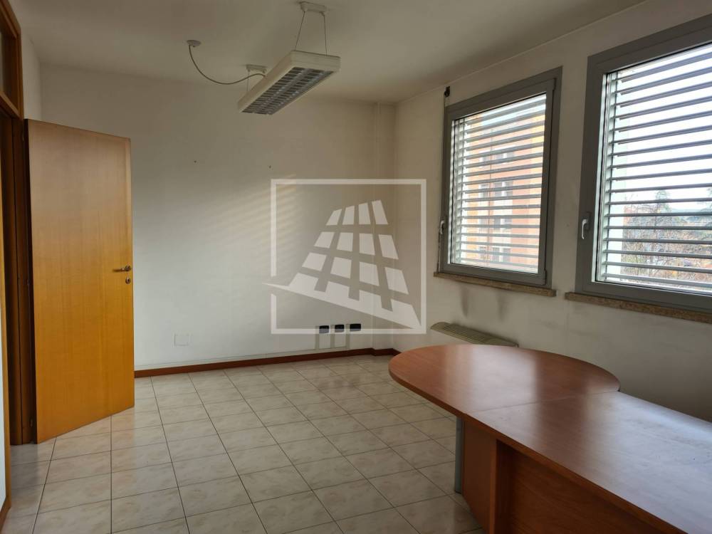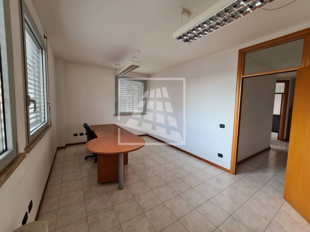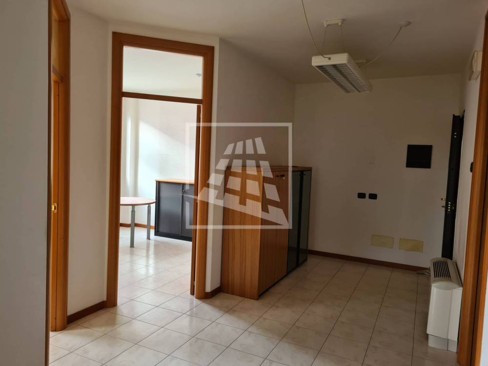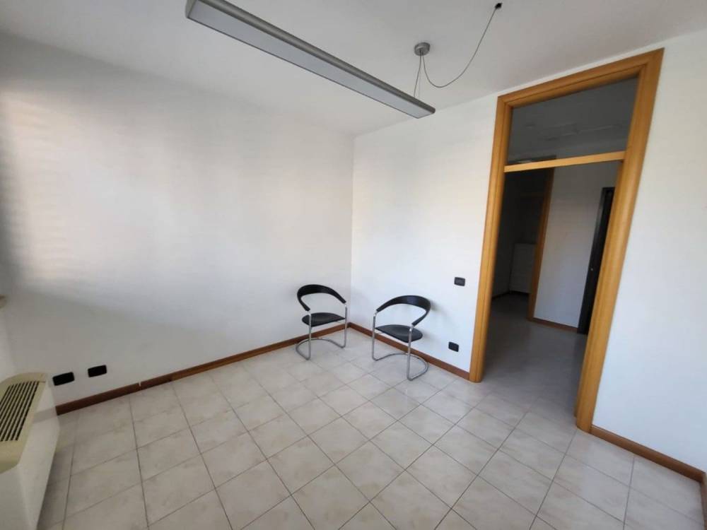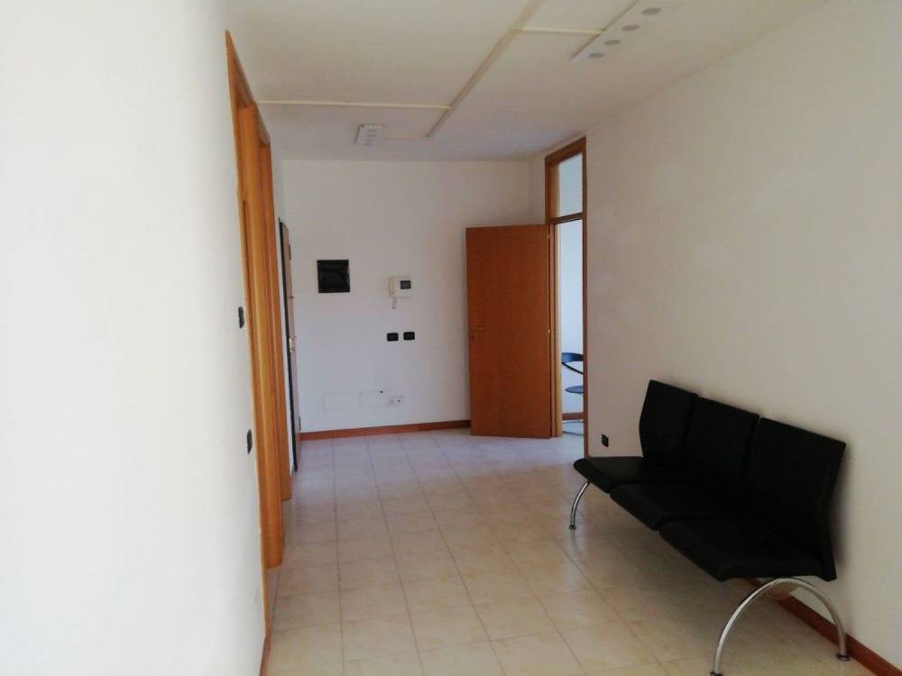 Lo spazio è attualmente suddiviso in ingresso con porta blindata, ampio disimpegno uso reception o sala d'attesa, due vani ufficio, un ampio vano per sala riunioni, ripostiglio e servizio con antibagno.