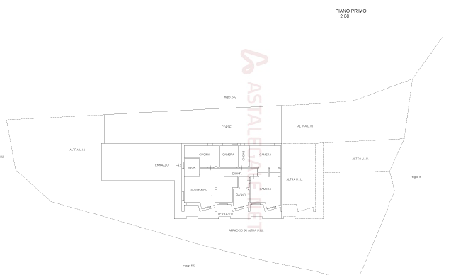 Superficie commerciale pari a mq. 145 circa cui devono essere aggiunti mq. 7 circa di balcone (mq.29 reali), mq. 13 circa di terrazza coperta (65 reali) e mq. 11 di corte esclusiva (134 reali); il tutto per una superficie commerciale complessiva di mq. 186 circa, con altezza interna pari a mt. 2,80.
