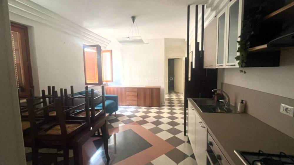 L’ingresso conduce a un ampio e accogliente soggiorno con cucina a vista, uno spazio conviviale ideale per momenti di relax e vita quotidiana.