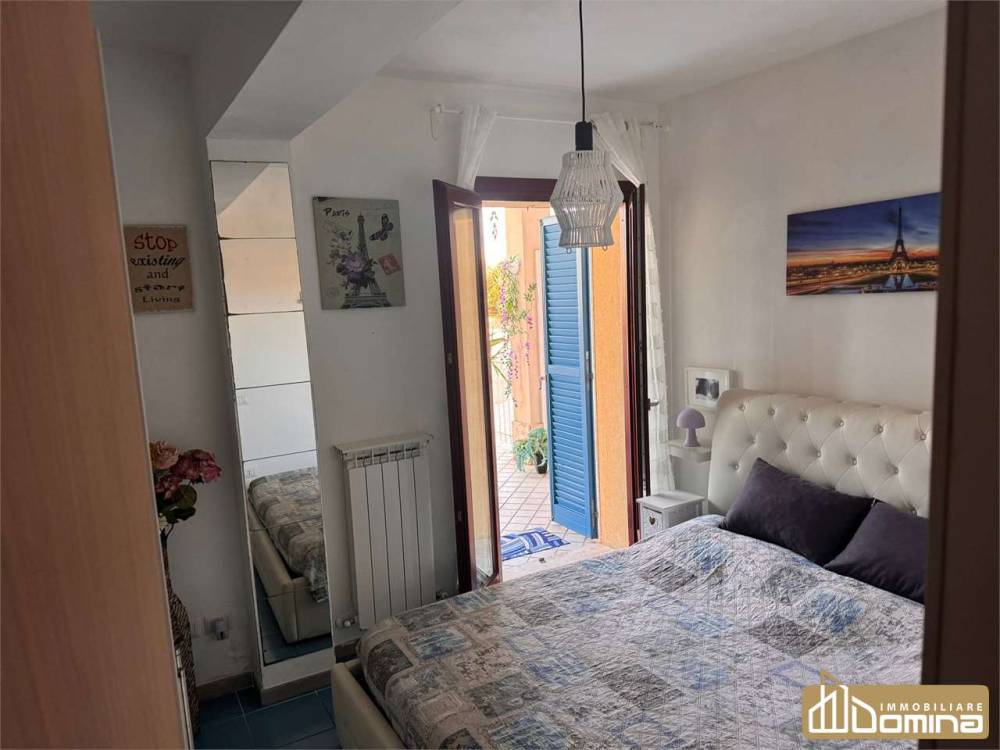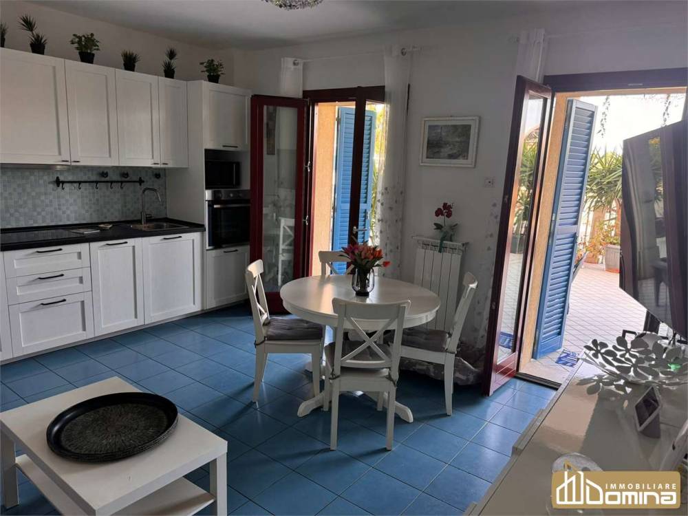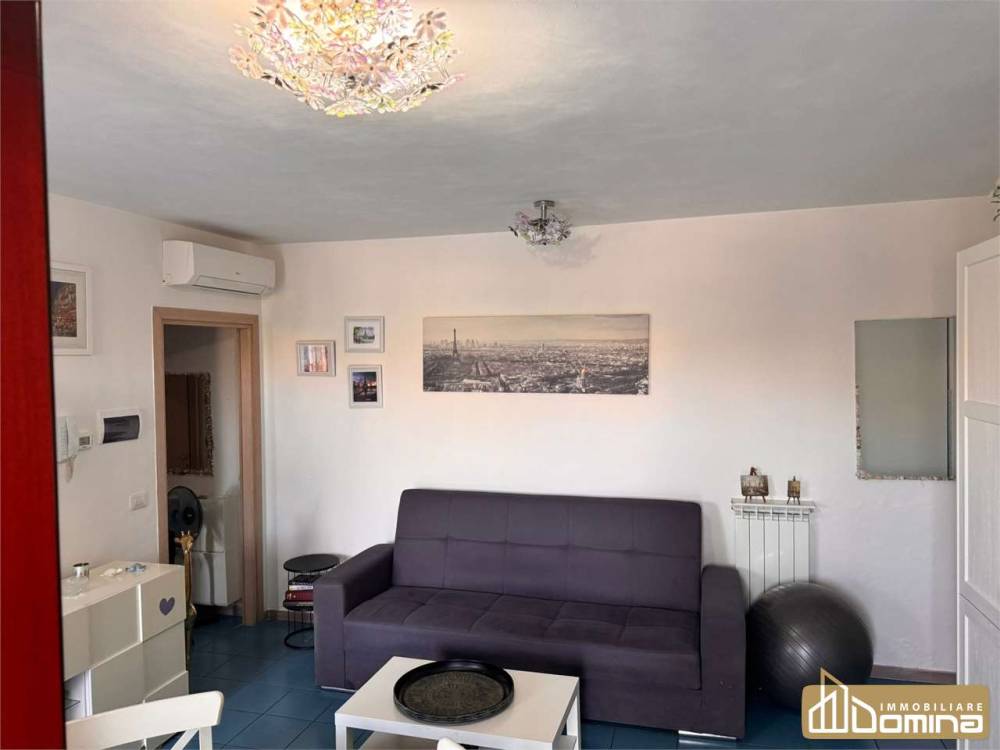 L'appartamento è così composto: ingresso su soggiorno cucina open space con accesso al piastrellato esterno di proprietà, comoda camera matrimoniale e bagno.