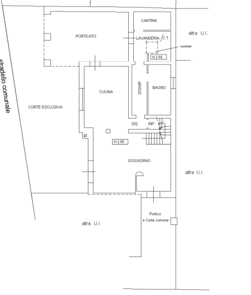 Casa singola al piano terra, primo e sottotetto con pertinenziale autorimessa doppia e corti esclusive antistanti e retrostante. Composta al piano terra da un ingresso con ampio soggiorno con uscita su corte laterale; ampia cucina con uscita su porticato, un bagno, una lavanderia e cantina. Al piano primo da un disimpegno, tre camere doppie due delle quali con accesso su balconata, un bagno, una camera matrimoniale con bagno esclusivo, cabina armadio e balconcino. Al secondo (sottotetto) una stanza mansardata con un bagno e uscita su terrazza.