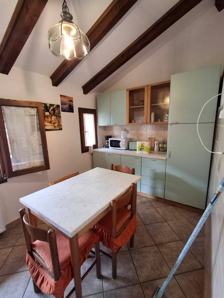 La cucina e le camere hanno travi a vista. I locali hanno ampie finestre e sono tutti molto luminosi.