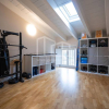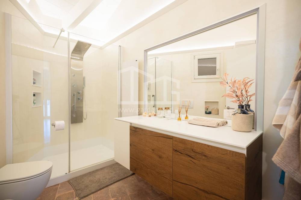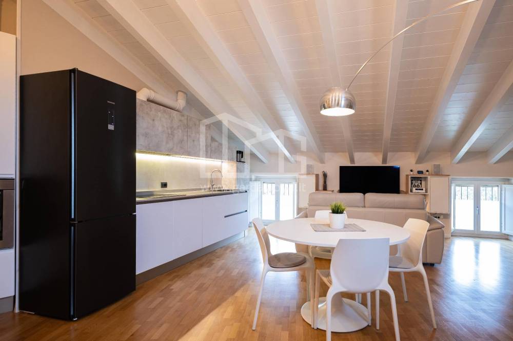 Gli ambienti sono impreziositi da pavimenti in parquet e da travi in legno sbiancato, che donano grande luminosità e unatmosfera calda e accogliente.