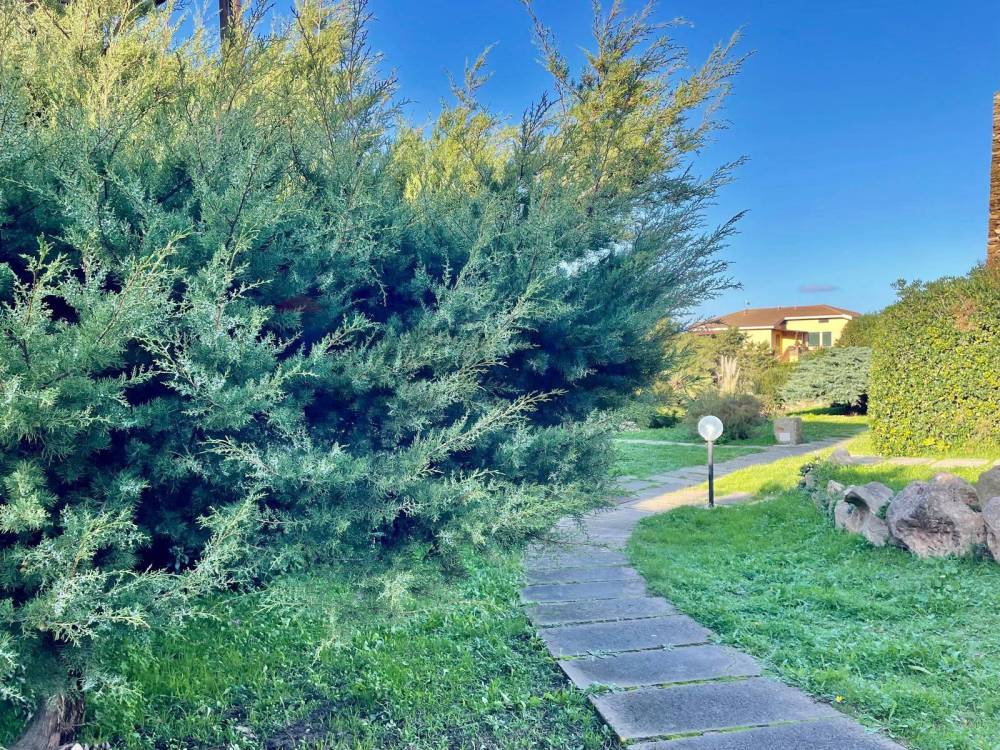 Dalla zona giorno si accede alla veranda, perfetta per pranzi e momenti di relax, con affaccio su un paesaggio naturale di grande fascino, tra giardini curati e profumi della macchia mediterranea.