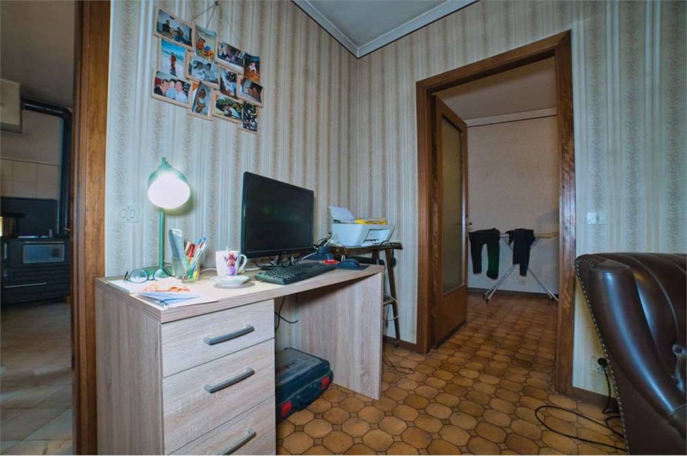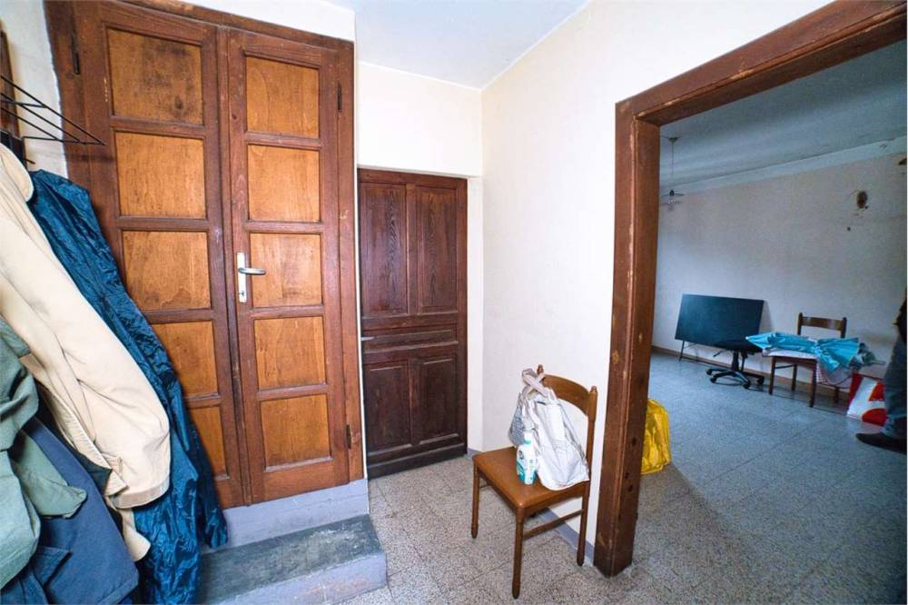 Una porta puó essere aperta nella sala, così da collegare questo ambiente con un altro ampio locale già ammodernato a cui attualmente si accede dall' altra porta in terrazzo. Con questa ridistribuzione degli spazi abitativi, questa porta servirebbe da ingresso generale, anche per il sottotetto, mentre l'altra potrebbe essere chiusa.