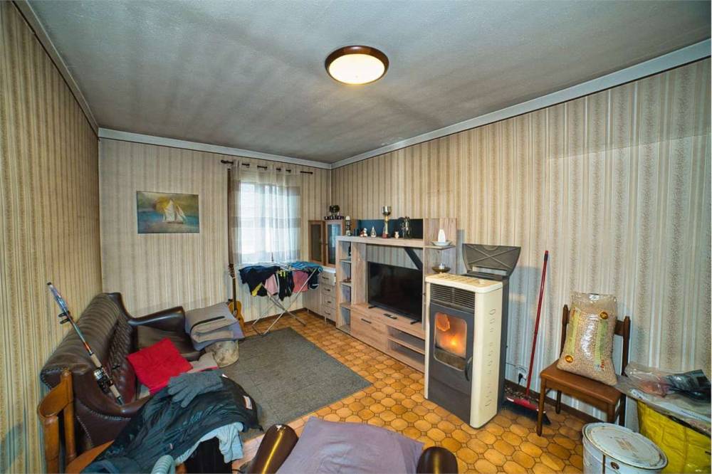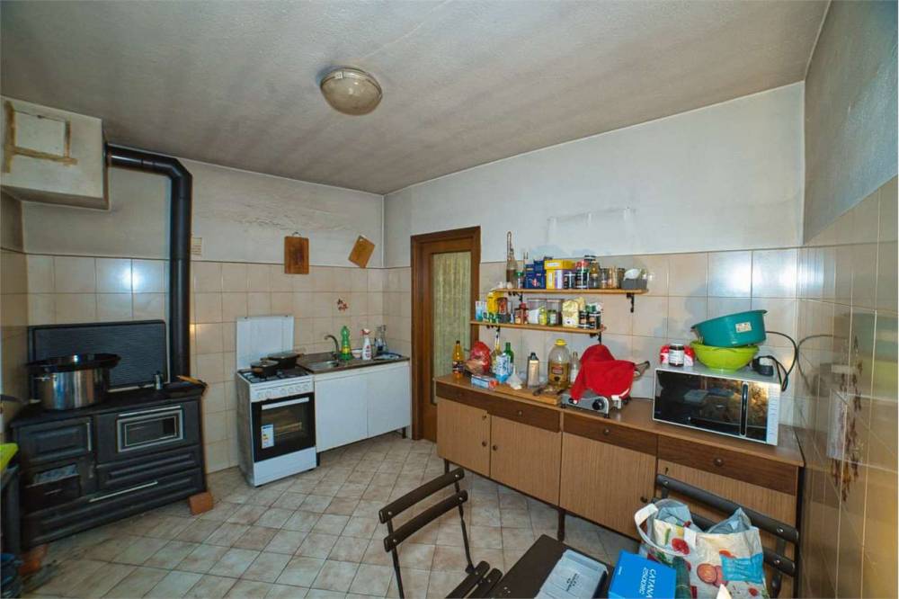 Sorge al primo piano di una palazzina di due livelli abitativi a ridosso dalla strada statale. La sua superficie complessiva è di 120 metri qudrati, 60 metri quadrati abitabili più altri 60 in un ampio sottotetto. All'appartamento si accede da grazioso terrazzo di circa 15 meti quadri e si divide in due zone, separate da due porte d'ingresso. Attualmente viene utilizzata principalmente quella che conduce direttamente alla cucina. La prima zona comprende appunto cucina abitabile con piano cottura e stufa a legna, sala con stufa a pellet e camino, stanza e bagno con vasca e lavatrice.
