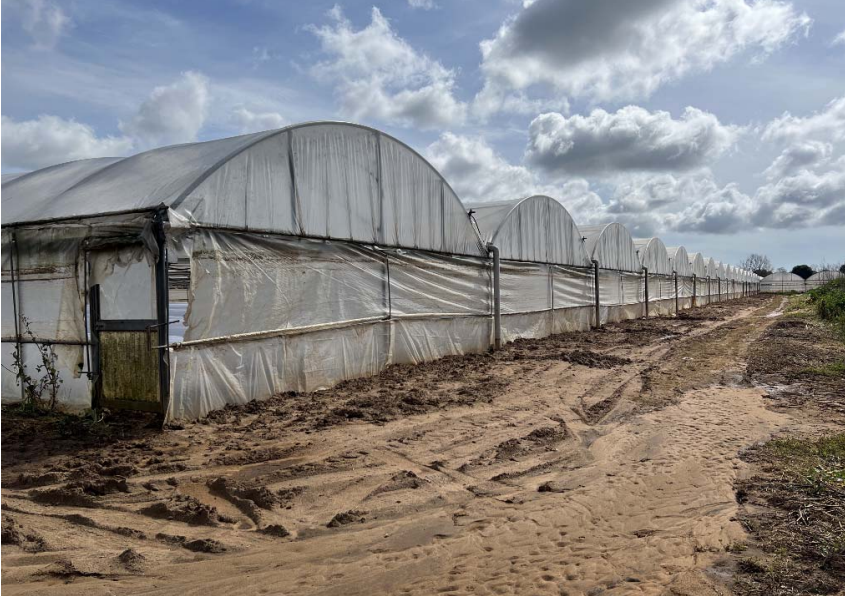 Terreno situato ad Anzio (RM), in Via di Cavallo Morto. Il lotto è costituito da varie particelle contigue che formano un unico appezzamento di 33.926 mq, sul quale sono installate quattro serre con struttura metallica e film plastico, per un totale di 21.000 mq di superficie coperta. Nelle serre vengono coltivati prodotti ortofrutticoli, rendendo l'area ideale per attività agricole professionali.