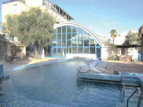 Hotel termale di categoria tre stelle denominato Hotel Eden, ad Abano Terme PD, via Valerio Flacco, sviluppato su sei piani fuori terra, dotato di sessantadue camere, di sale da pranzo e cucina, di reparto cure termali attrezzato per fangoterapia aperto anche a utenti esterni in regime di convenzione sanitaria, di reparto benessere dotato di servizi estetici, sauna, grotta termale, piscina coperta e scoperta tra loro collegate e parco esterno attrezzato.