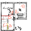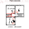 al primo piano, si distribuiscono con una camera da letto, il ripostiglio, il bagno e una stanza di passaggio dalla quale parte la scala che dà accesso all'ultimo piano;