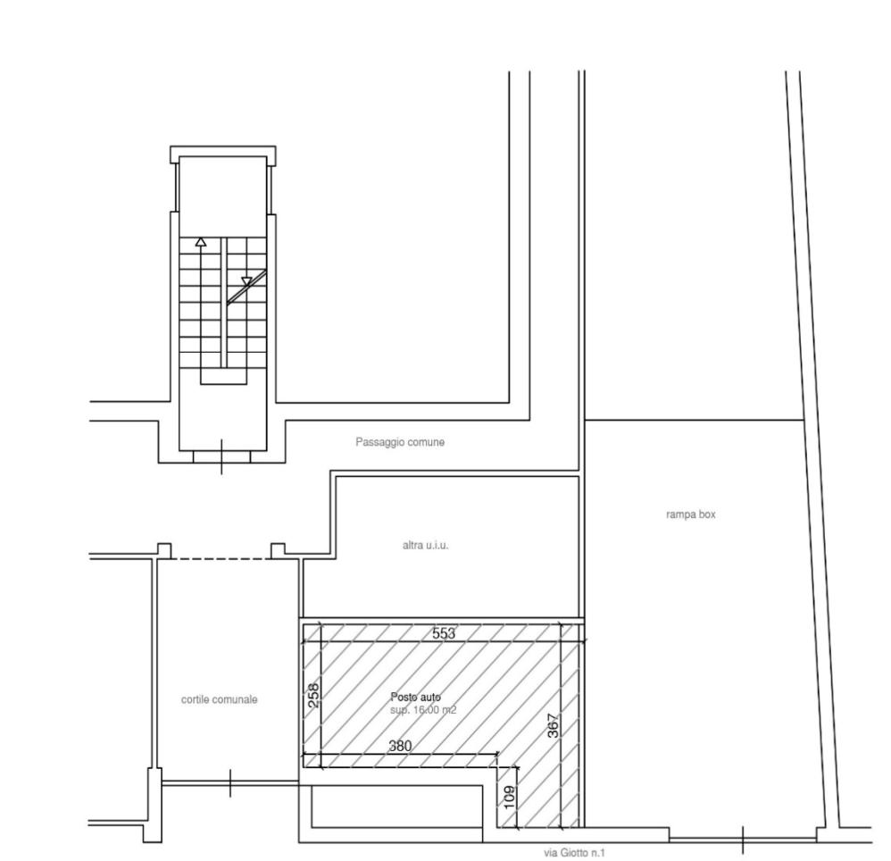 Fa parte della struttura un posto auto scoperto al piano terreno di mq. 16.