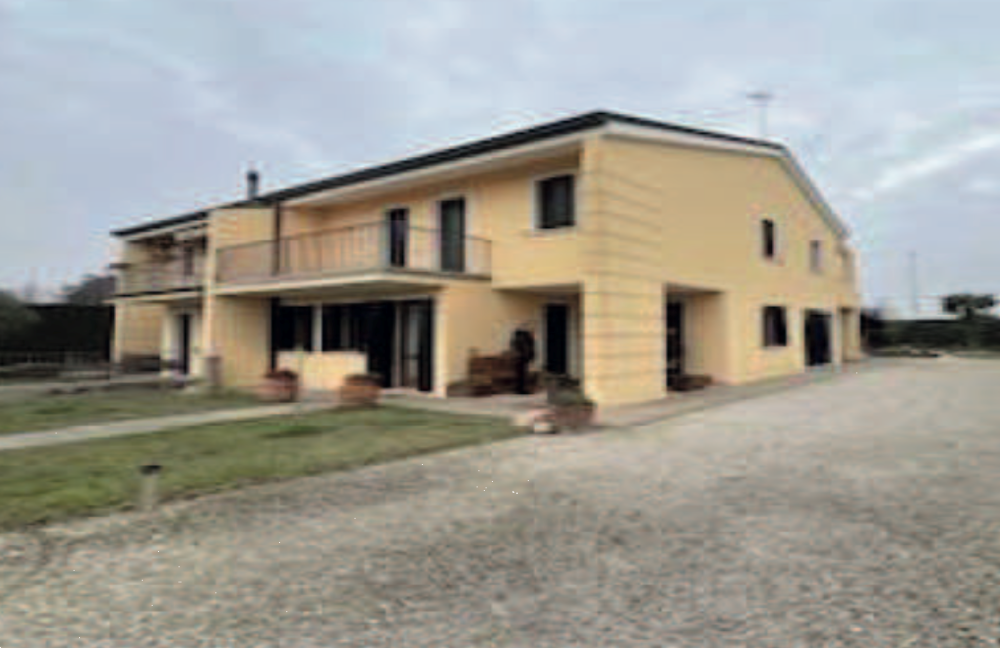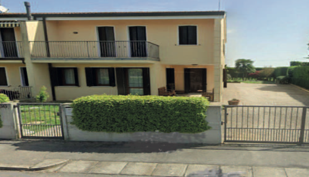 Porzione di bifamiliare su due livelli con garage ed ampio scoperto di pertinenza situato ad Agna (PD) in via Monsignore Carlo Liviero, composta al piano terra da portico d'ingresso, un soggiorno, cucina, un bagno, vano scala interno che adduce al livello successivo, garage; al piano primo composto da camera matrimoniale, una camera singola, poggiolo, disbrigo, un bagno, disimpegno dotato di terrazzo e poggiolo. Nel disbrigo è presente una scala in legno che porta al sottotetto finestrato adibito a mansarda.