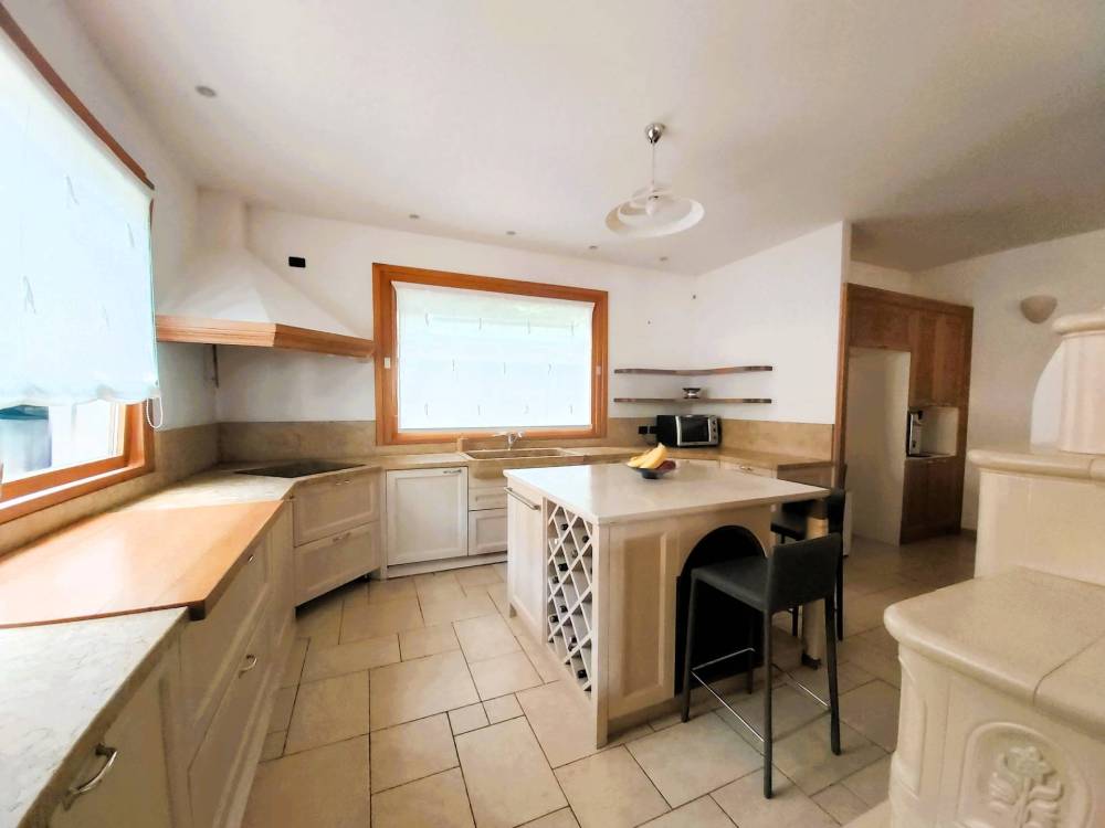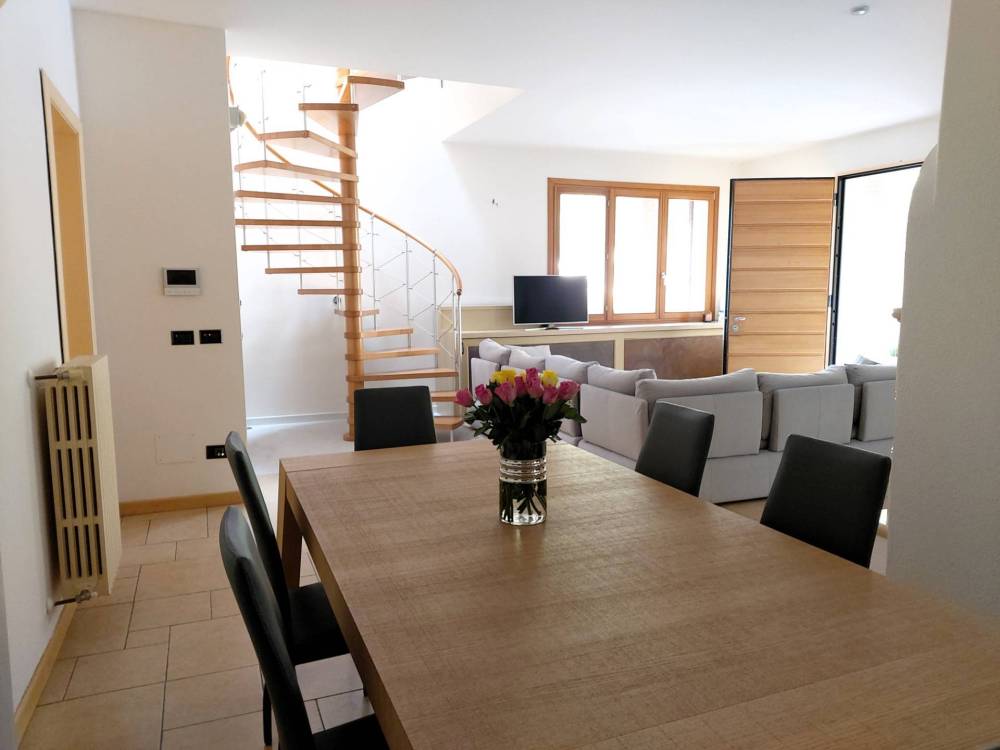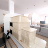 Al piano terra si viene accolti da una zona giorno ariosa e inondata di luce naturale, dove la cucina e il soggiorno sono separati solo visivamente dalla presenza scenica di una maestosa stufa in maiolica che oltre a garantire un calore avvolgente nei mesi invernali, è un elemento esclusivo darredo che dona eleganza e carattere anche destate.