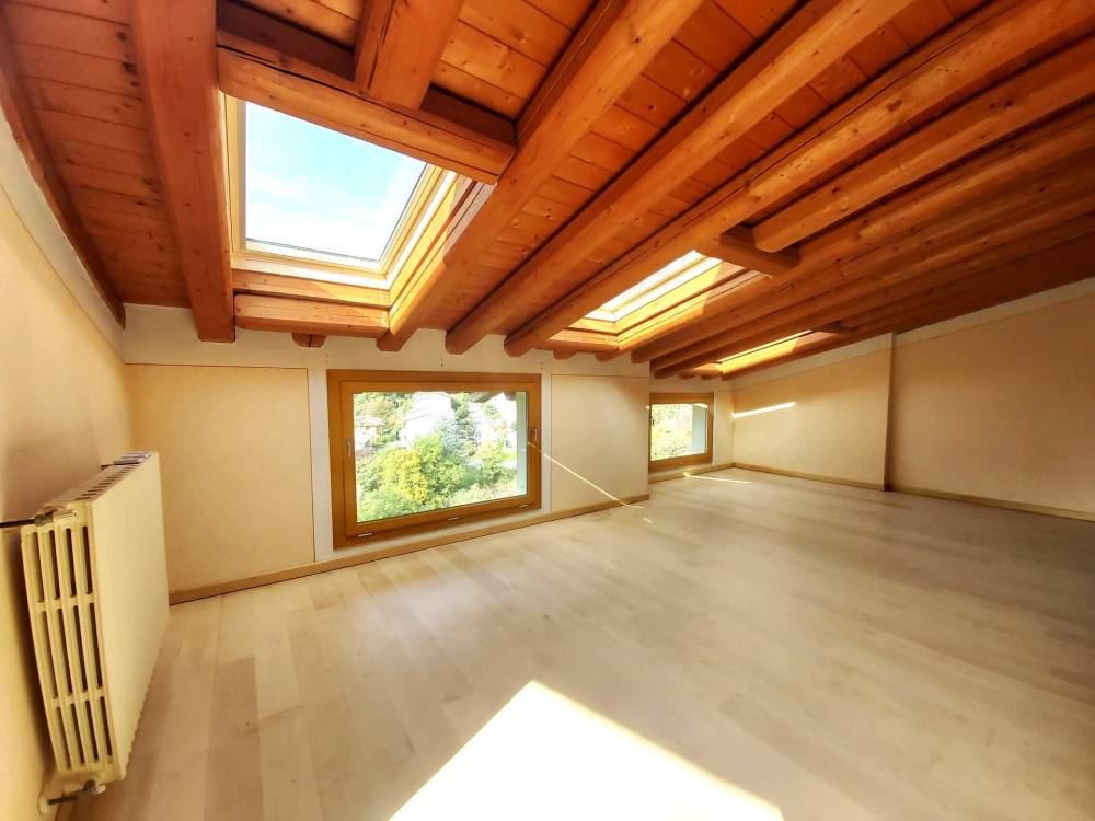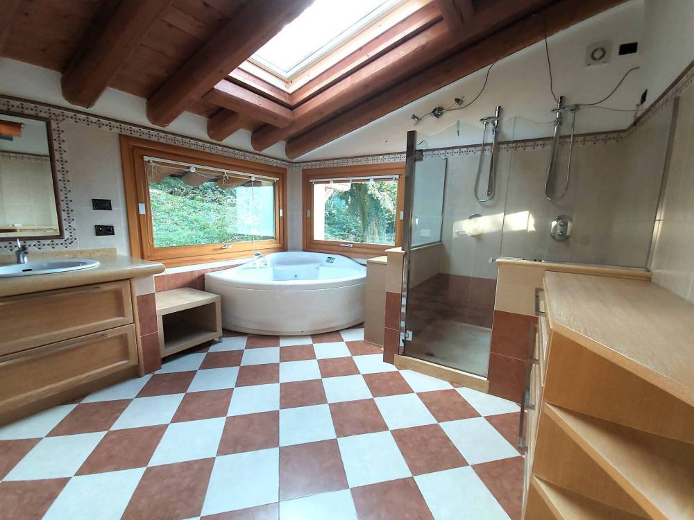 Una scala interna conduce al piano superiore dove troviamo un ampio living con travi a vista e vetrate spettacolari che catturano la luce durante tutto larco della giornata. Qui si apre uno spazio personalizzabile, perfetto per diventare sala lettura, zona relax o palestra privata. Il piano comprende anche due ulteriori camere da letto, un bagno lussuoso con vasca idromassaggio e box doccia doppio, e un esclusivo bagno turco privato per vivere momenti di autentico relax senza mai lasciare casa. Il tutto impreziosito da ampie vetrate con vista sul verde circostante e da abbaini elettrocomandati e impianto di climatizzazione, che assicurano luminosità, aria fresca e comfort assoluto in ogni stagione.