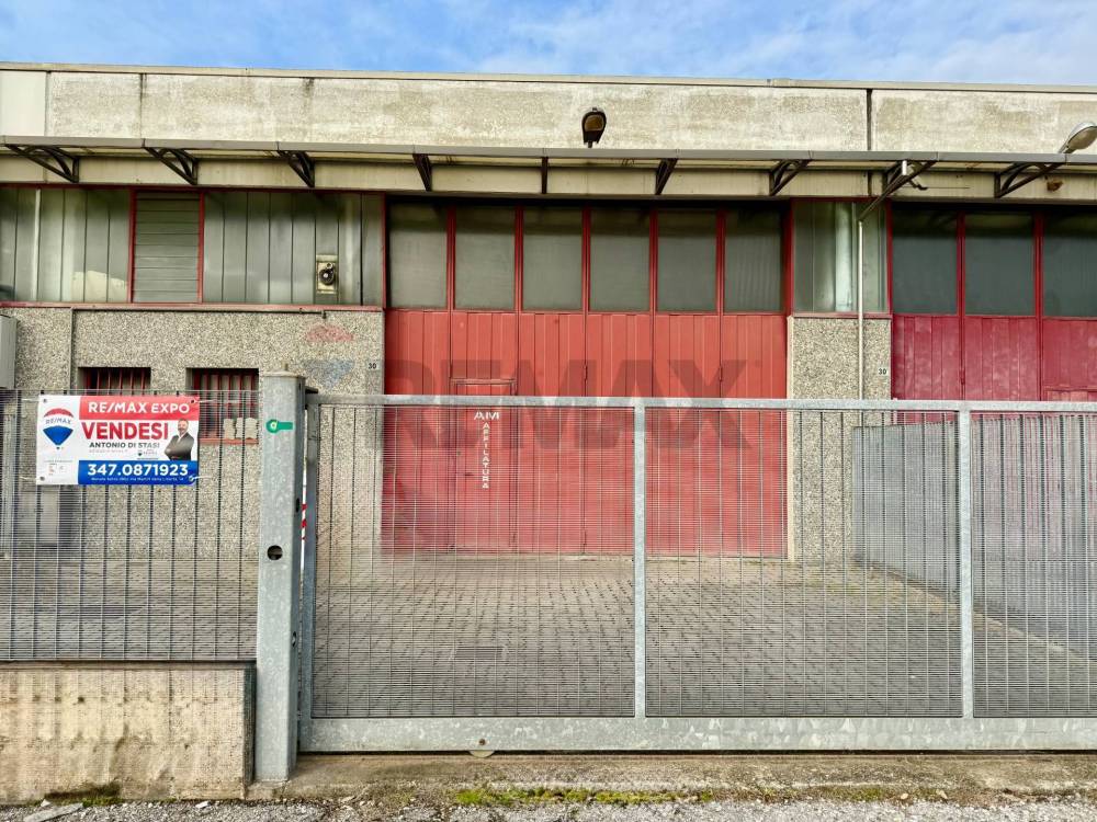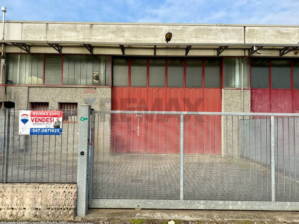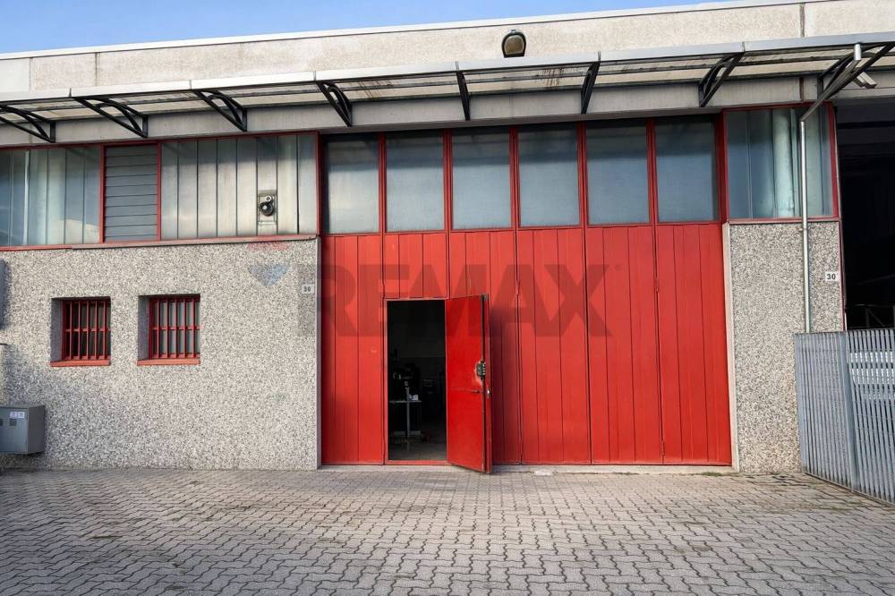Lingresso al capannone è garantito da unampia porta a libro, perfetta per laccesso di mezzi e le operazioni di carico e scarico.