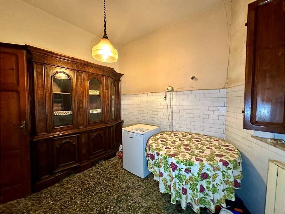 Il terratetto è in condizioni abitabili, si sviluppa su tre livelli e si compone da: piano terra, ingresso, sala, tinello, cucina con camino e altra cucina, al piano primo, disimpegno zona notte, due ampie camere matrimoniali, camera singola e bagno, a mezzo di scala si accede al piano superiore mansardato dove troviamo un ampio vano e altri due più bassi ad uso ripostiglio.